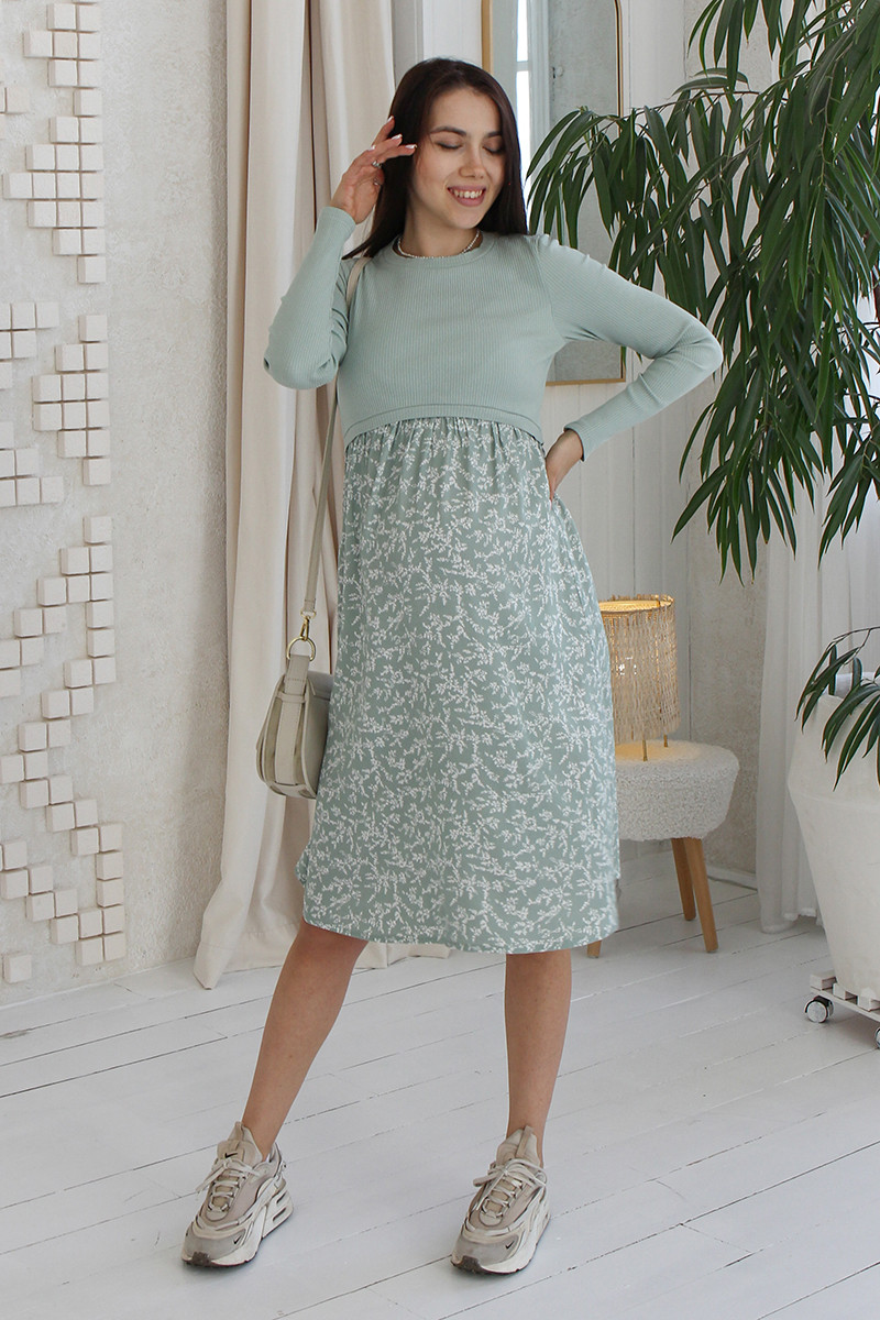 Елегантна та зручна сукня для вагітних і годуючих стане вашим надійним помічником у створенні стильного та функціонального образу. Завдяки комбінації трикотажного ліфа і спідниці зі щільного штапелю вона ідеально поєднує комфорт і естетику.